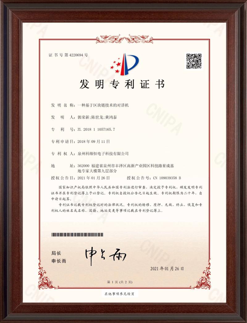 發(fā)明專利(一種基于區(qū)塊鏈技術(shù)的對(duì)講機(jī))