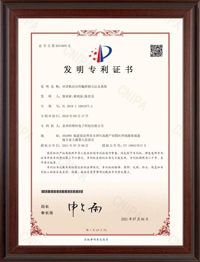 泉州科締恒電子科技有限公司(以下簡稱:科締恒)成立于2013年,坐落于美麗的僑鄉(xiāng)泉州,是一家以無線通信技術(shù)為核心的研發(fā)型創(chuàng)新企業(yè)。作為中國較早進(jìn)入對(duì)講機(jī)研發(fā)領(lǐng)域的企業(yè),科締恒始終秉持“品質(zhì)、創(chuàng)新、誠信”的人文理念。品質(zhì)即服務(wù),是產(chǎn)品優(yōu)越性能的保障,是企業(yè)核心競爭力的體現(xiàn);創(chuàng)新即發(fā)展,持續(xù)改進(jìn),不斷創(chuàng)新,是公司產(chǎn)品保持領(lǐng)先、蓬勃發(fā)展的體現(xiàn),使企業(yè)永保青春活力;誠信即信任,是客戶關(guān)系合作共贏的基礎(chǔ)。